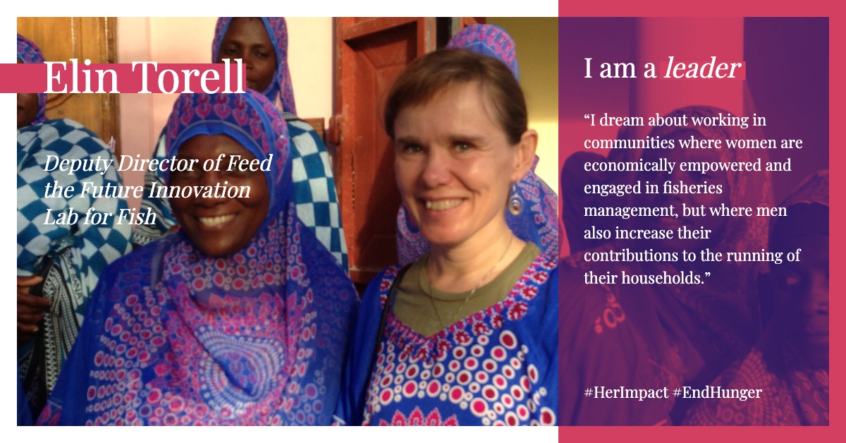 “Although we often think of fisheries as a male-dominated field, women are engaged in almost every part of the value chain, including funding fishing trips, gleaning fish along the shoreline, buying and processing fish, and more,” said Torell. “However, when the amount of fish declines, it has a big impact on women and children, who are often the most vulnerable in times of food shortage. I believe that if women are more involved in fisheries and aquaculture, management will become more equitable and well rounded.”