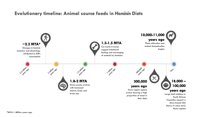 Why does the fish story from our evolutionary past matter today? It is important because some populations around the world have lost access to the shore-based diets or similar nutrient rich animal foods with serious consequences for their health and survival. Let’s go back in time to explore how fish and other animal source foods (ASFs) became integral to the anatomy and physiology of our species, enduring nearly two million years until agriculture and industrialization again revolutionized diets with health consequences.