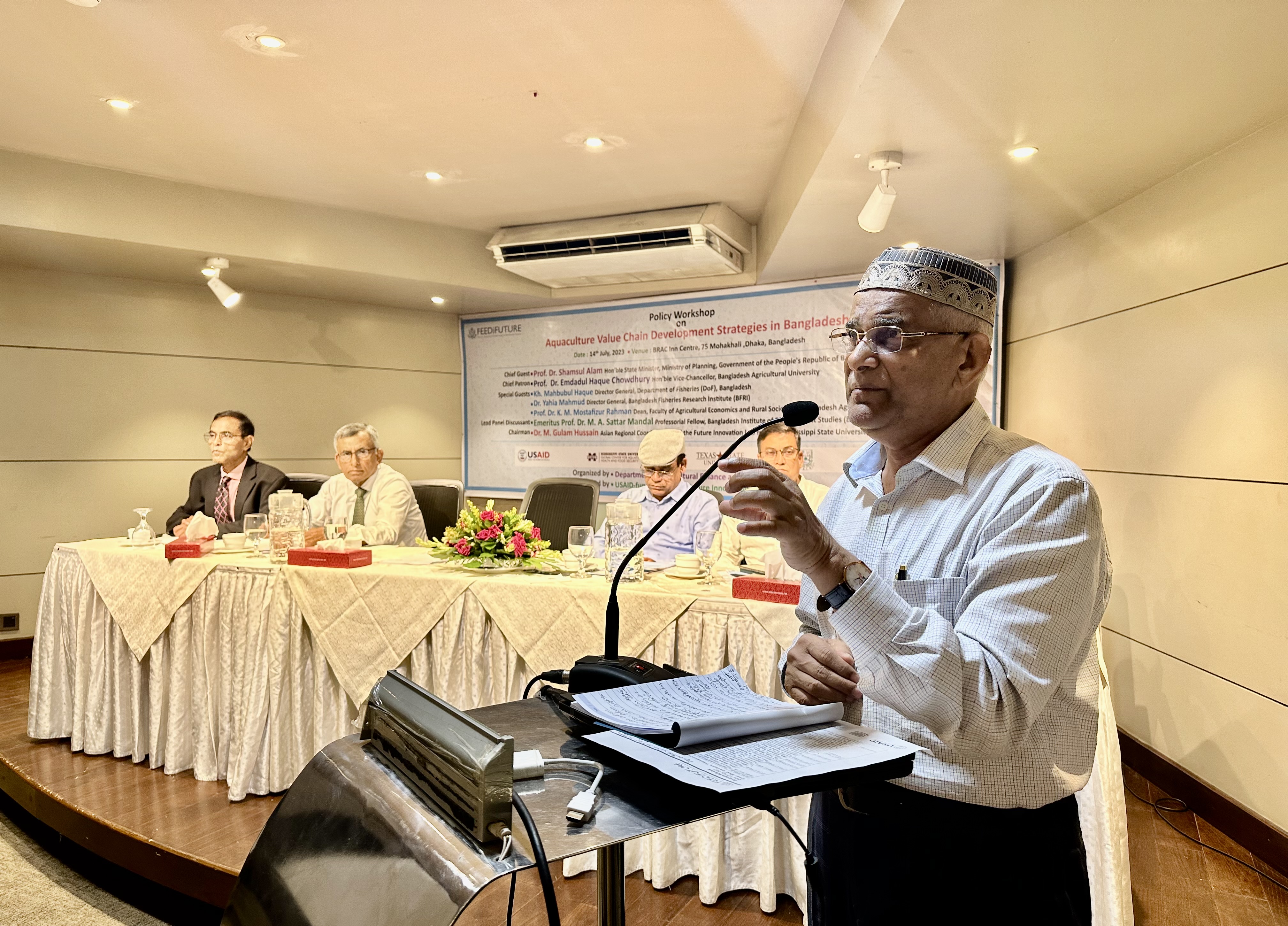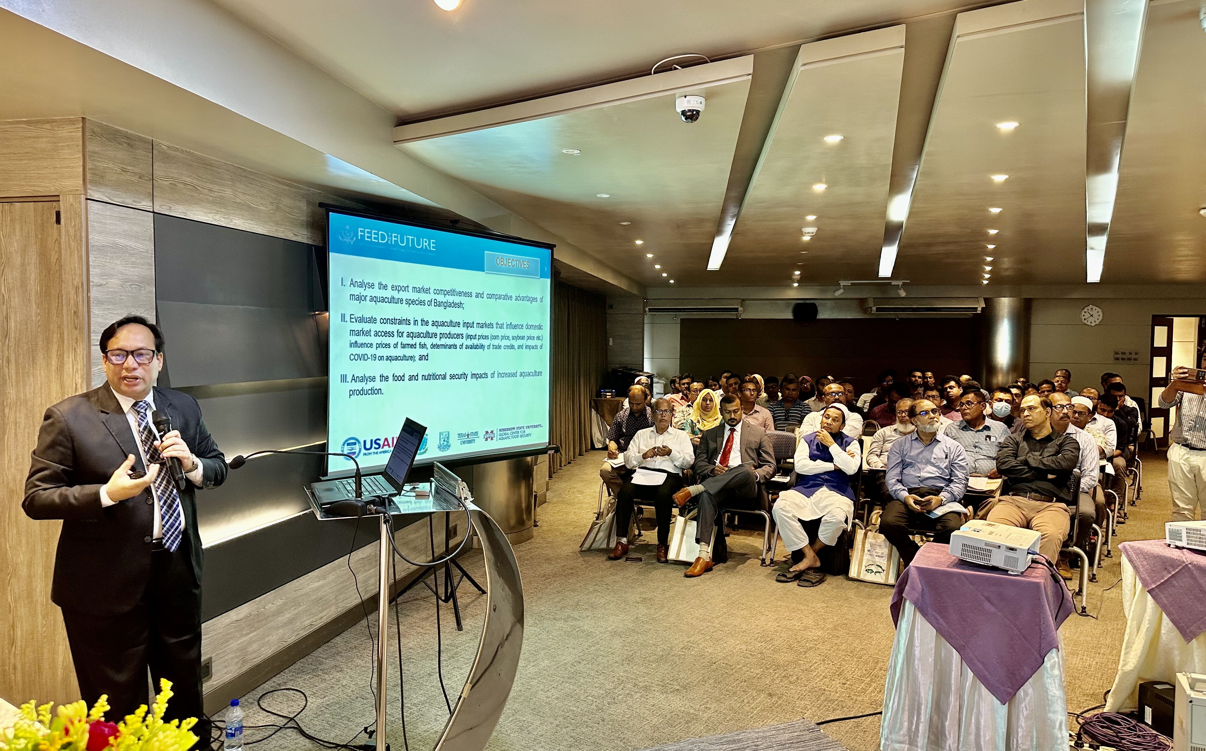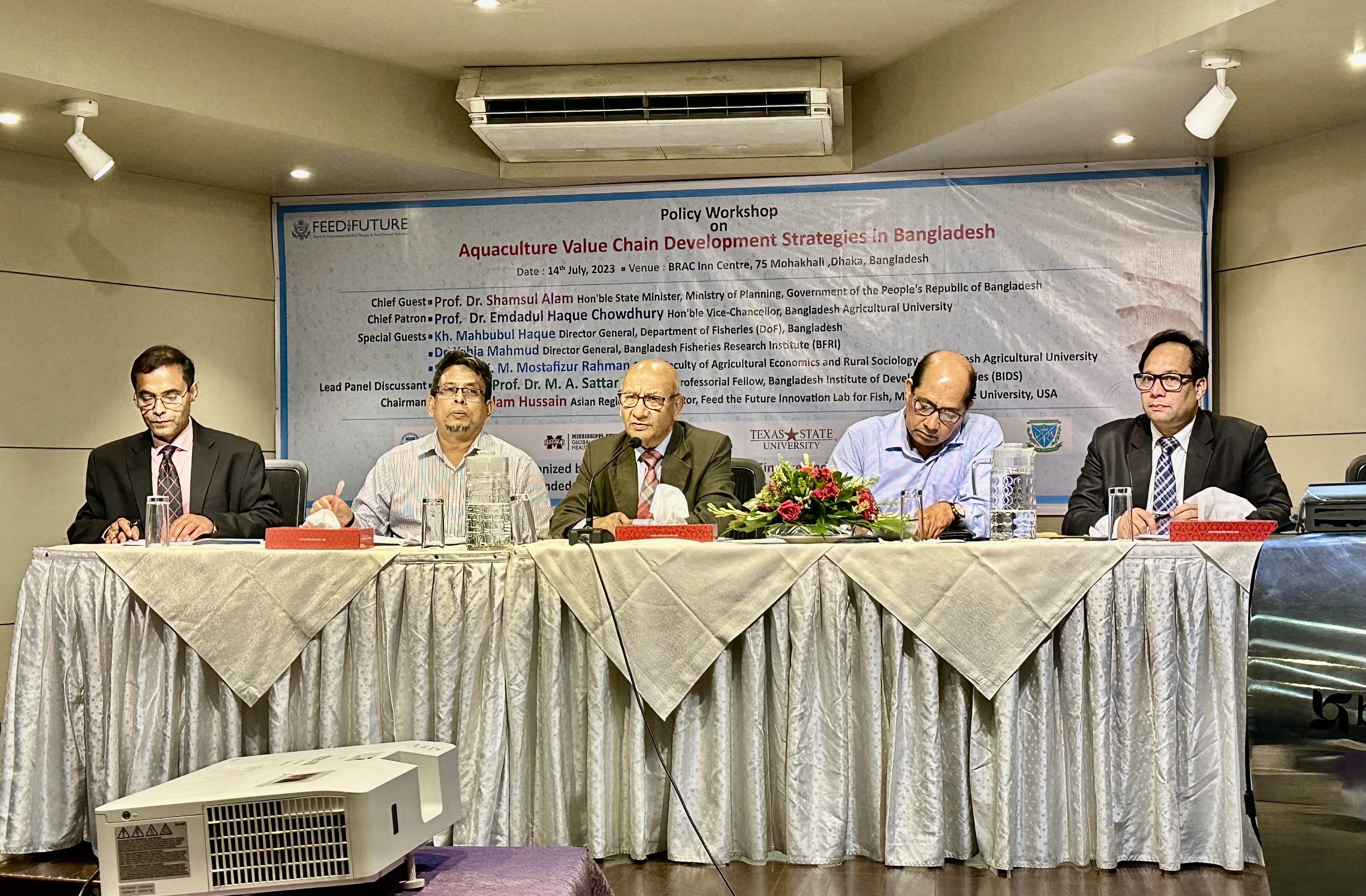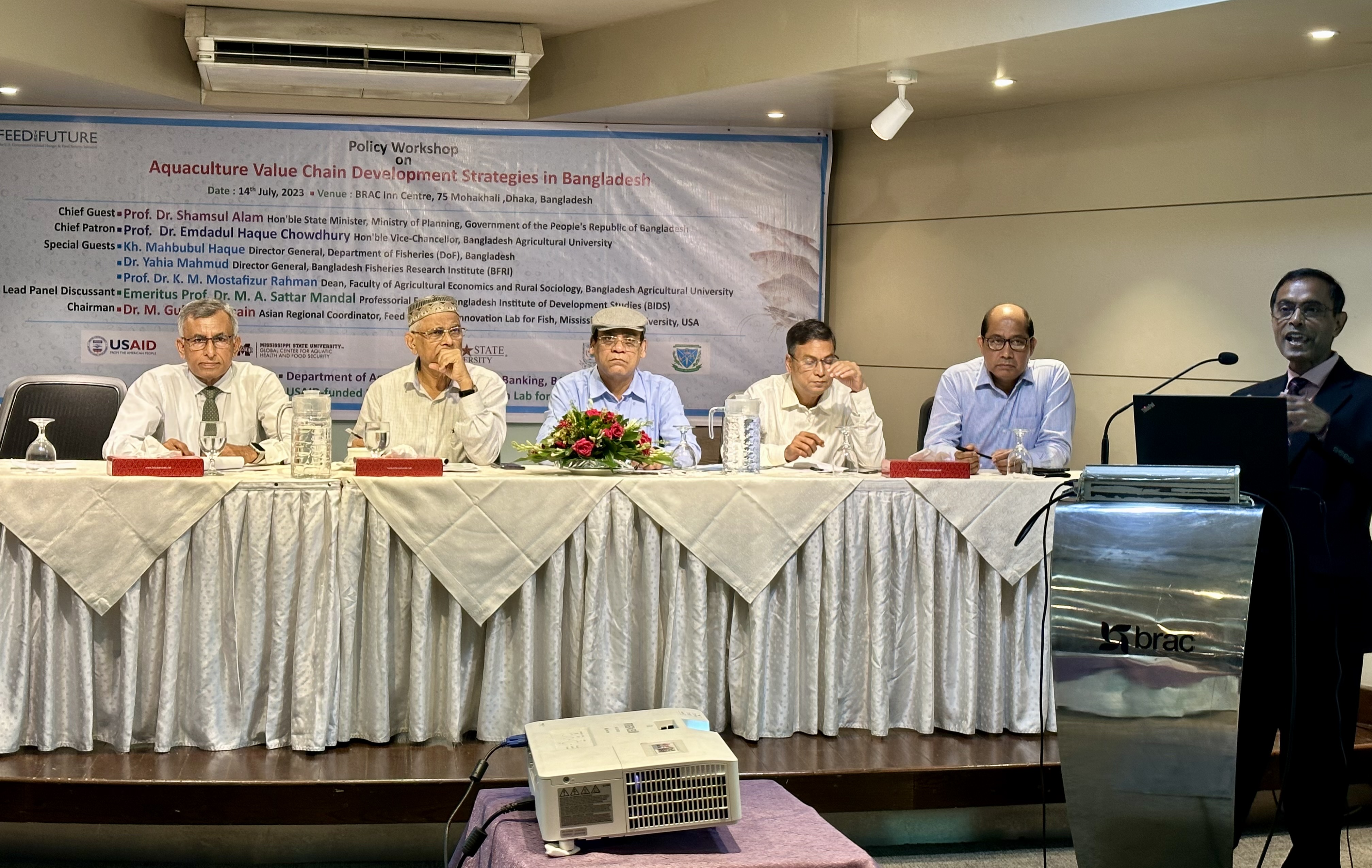 The policy workshop by the Feed the Future Innovation Lab for Fish funded activity called Aquaculture Value Chain Development Strategies in Bangladesh was held on July 14, 2023, at BRAC Inn Centre in Dhaka, Bangladesh.