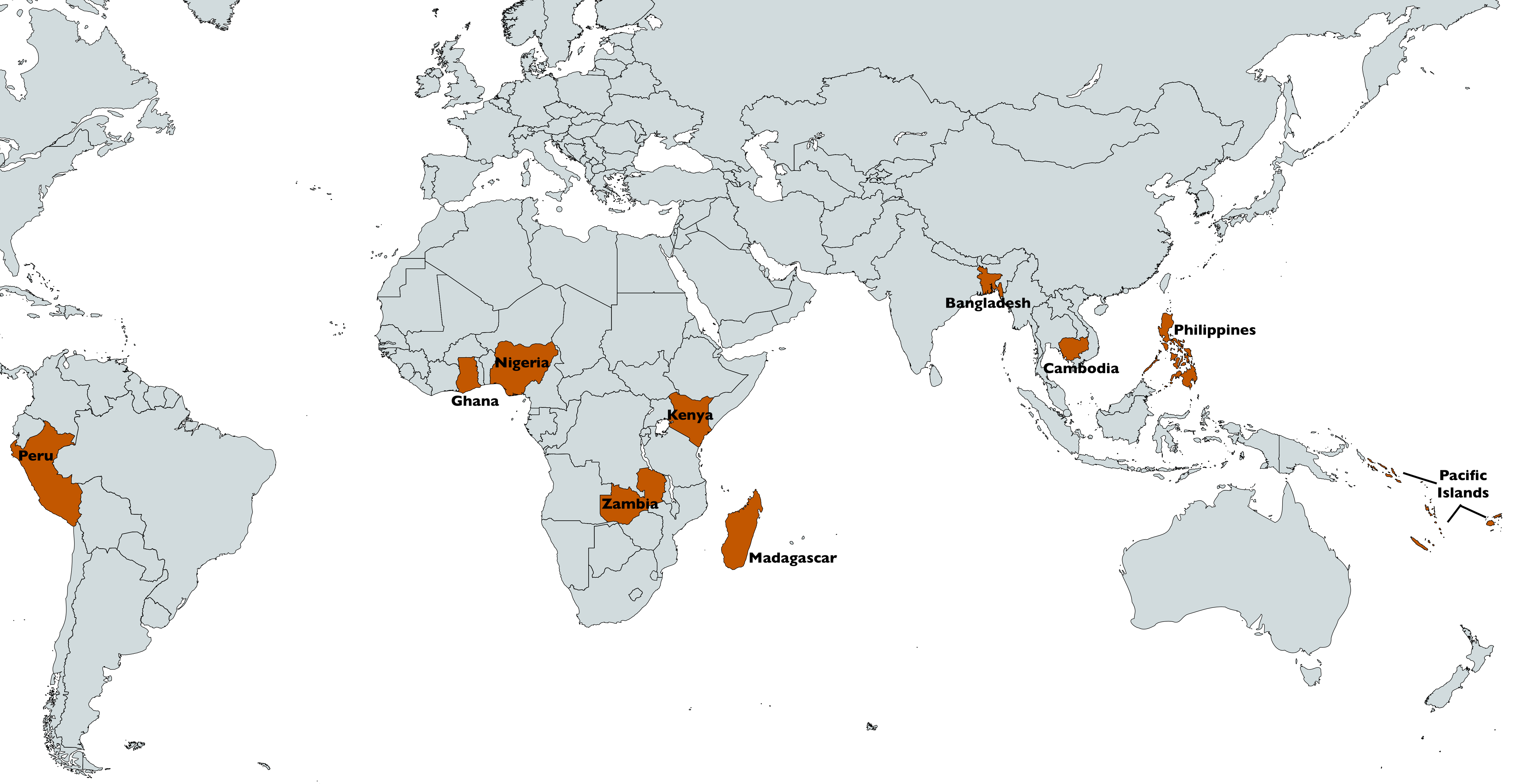 From 2018–2025, the Fish Innovation Lab supported 30 activities in 10 countries: Bangladesh, Cambodia, Ghana, Kenya, Madagascar, Nigeria, the Pacific Islands, Peru, the Philippines, and Zambia.