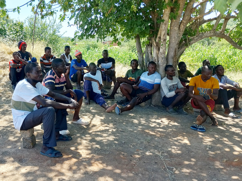 Crayfishers near Siavonga in discussions about methods of catching crayfish and aspects of the fishery and ecological impacts by the invasive species.